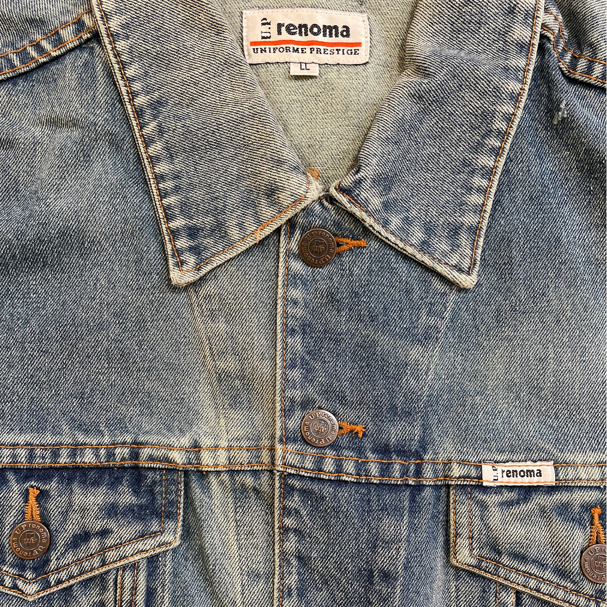 Heavy distressed vintage denim jacket from UP RENOMA with a lot of character.
